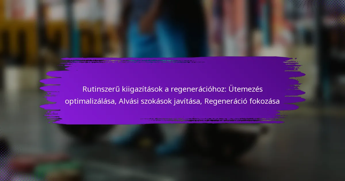 A regeneráció rutinbeállításai elengedhetetlenek a pihenés maximalizálásához és az általános jólét javításához. Az ütemtervek optimalizálásával, az alvási szokások javításával és hatékony regenerációs technikák beépítésével az egyének jelentősen növelhetik fizikai és mentális egészségüket. A pihenés prioritása és a támogató környezet kialakítása kulcsfontosságú stratégiák ennek a folyamatnak a megkönnyítésére.